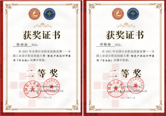 获首届全国工业设计职业技能大赛:陶瓷产品设计师学生组二等奖