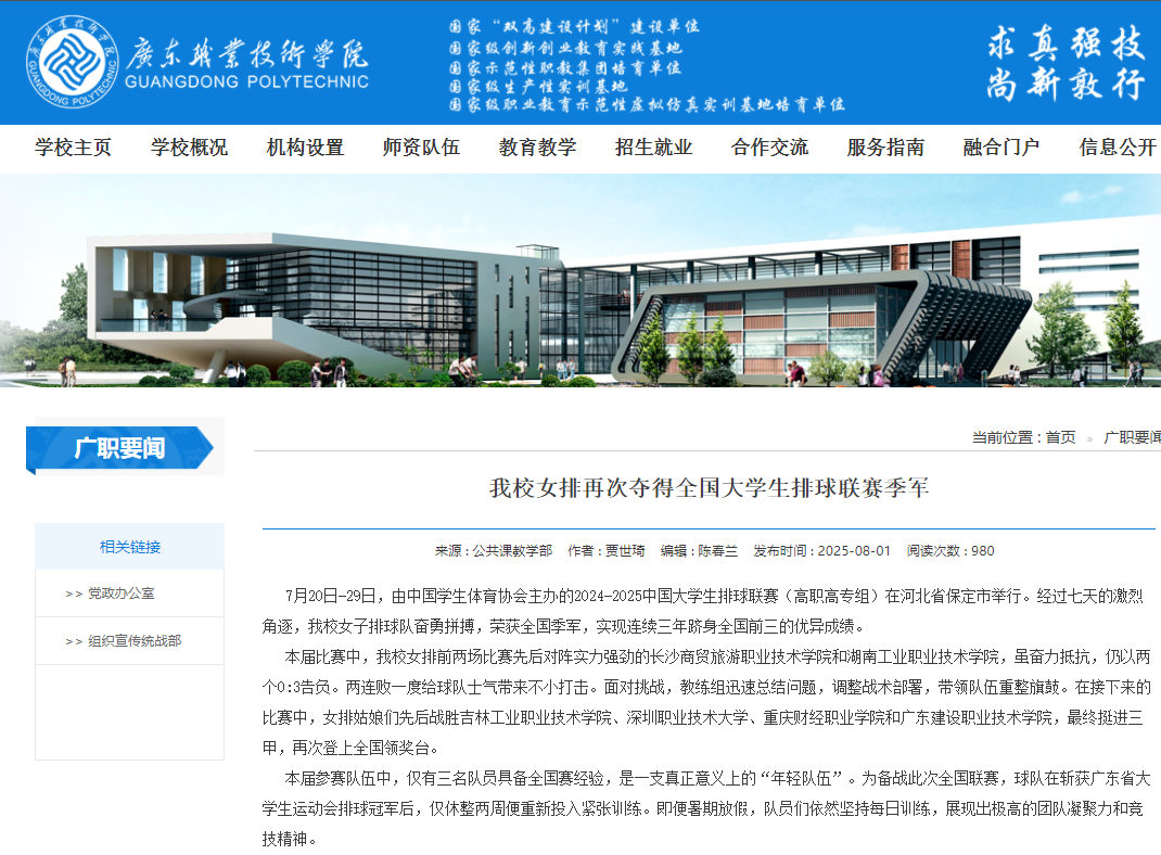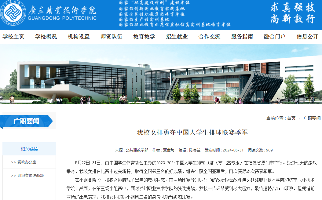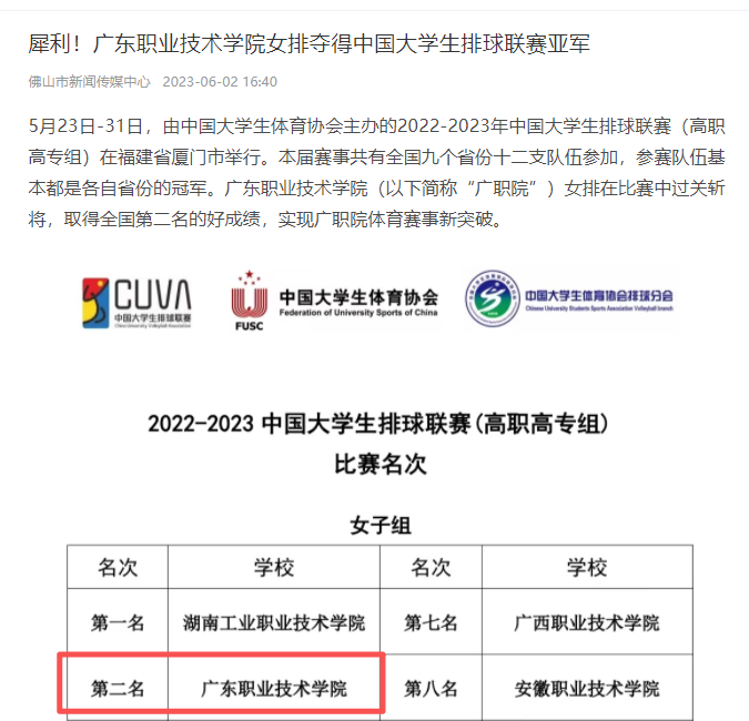 获中国大学生排球联赛:亚军1次,季军2次