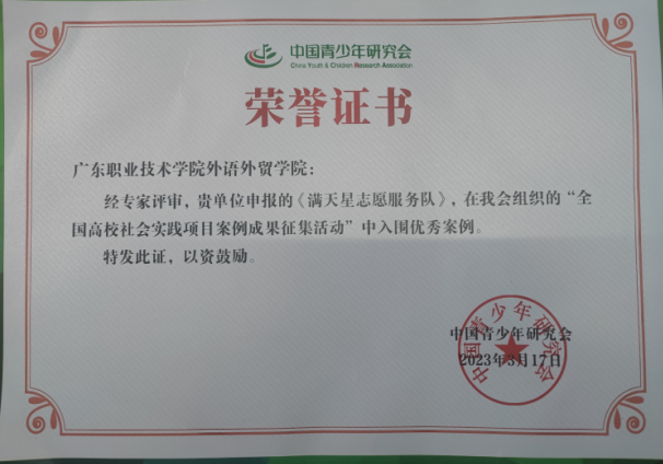 满天星志愿服务队”入选全国高校社会实践优秀项目案例