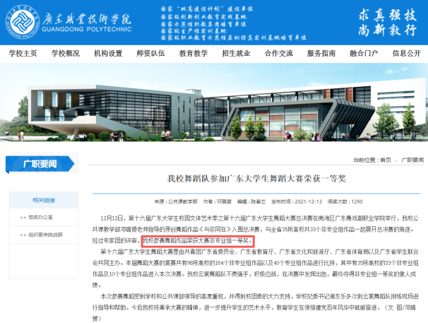第十六届广东省大学生舞蹈大赛:一等奖