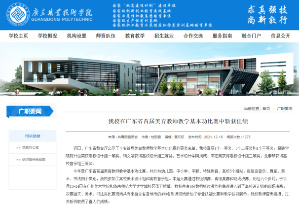 广东省美育教师教学基本功比赛:一等奖6项,二等奖4项,三等奖2项