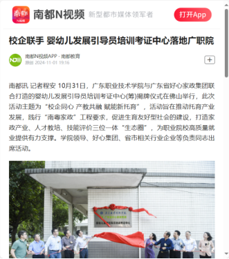 南都:校企联手 婴幼儿发展引导员培训考证中心落地广职院