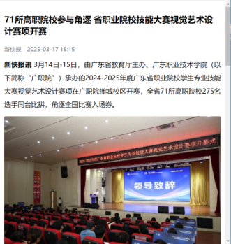 新快报:71所高职院校参与角逐 省职业院校技能大赛视觉艺术设计赛项开赛