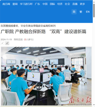 南方网:广职院 产教融合探新路 “双高”建设谱新篇
