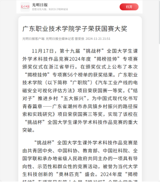 光明日报:广东职业技术学院学子荣获国赛大奖