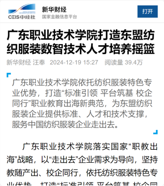 新华财经:广东职业技术学院打造东盟纺织服装数智技术人才培养摇篮