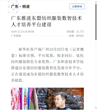 新华社广东:广东推进东盟纺织服装数智技术人才培养平台建设