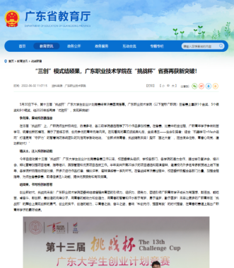 广东省教育厅:“三创”模式结硕果,广东职业技术学院在“挑战杯”省赛再获新突破!