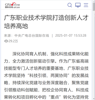 中央广电总台国际在线:广东职业技术学院打造创新人才培养高地
